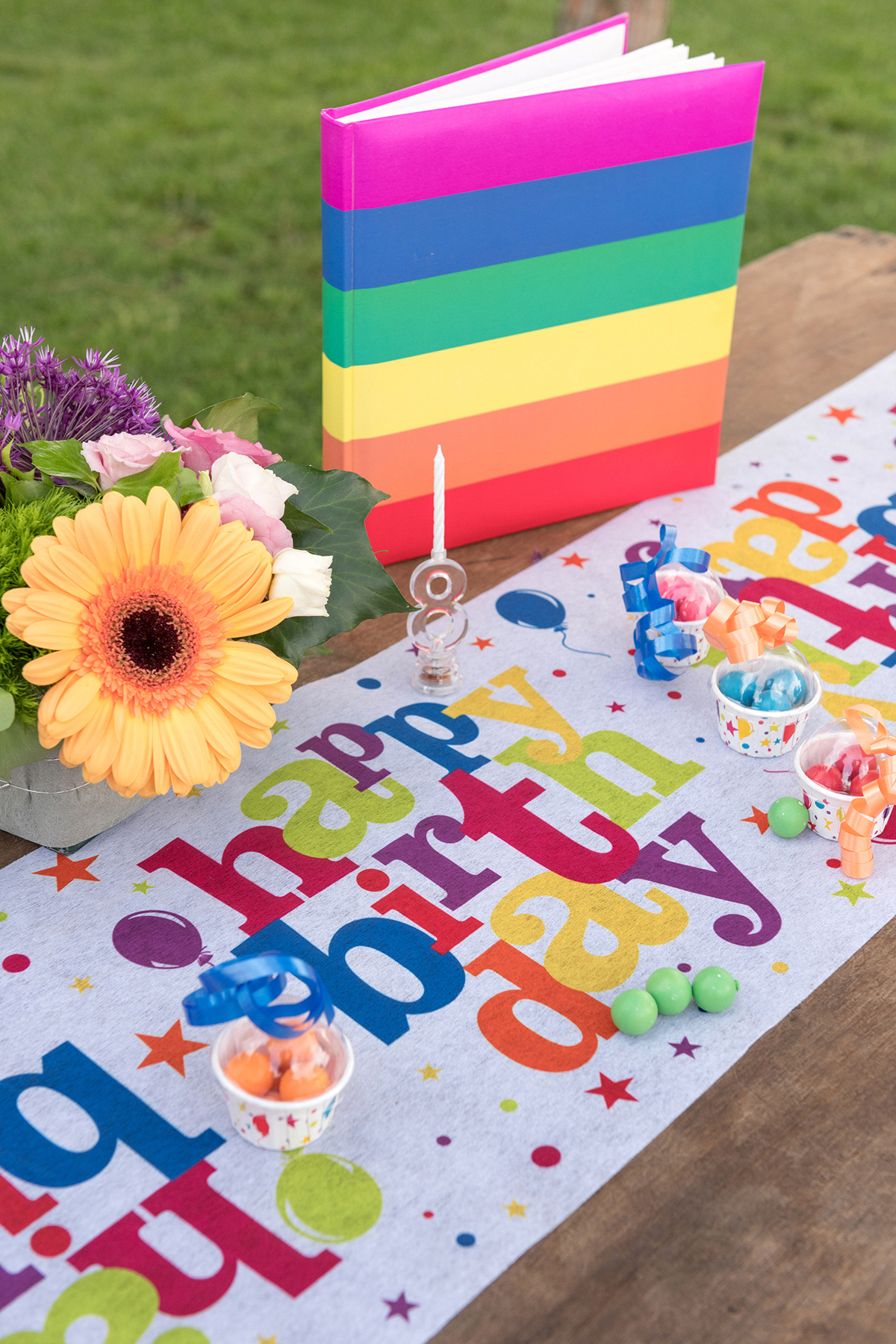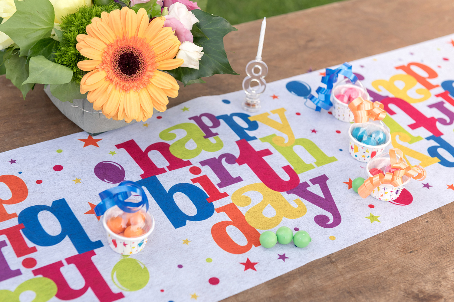 Multi colour Happy Birthday table runner 30cm x 5M T6198 99